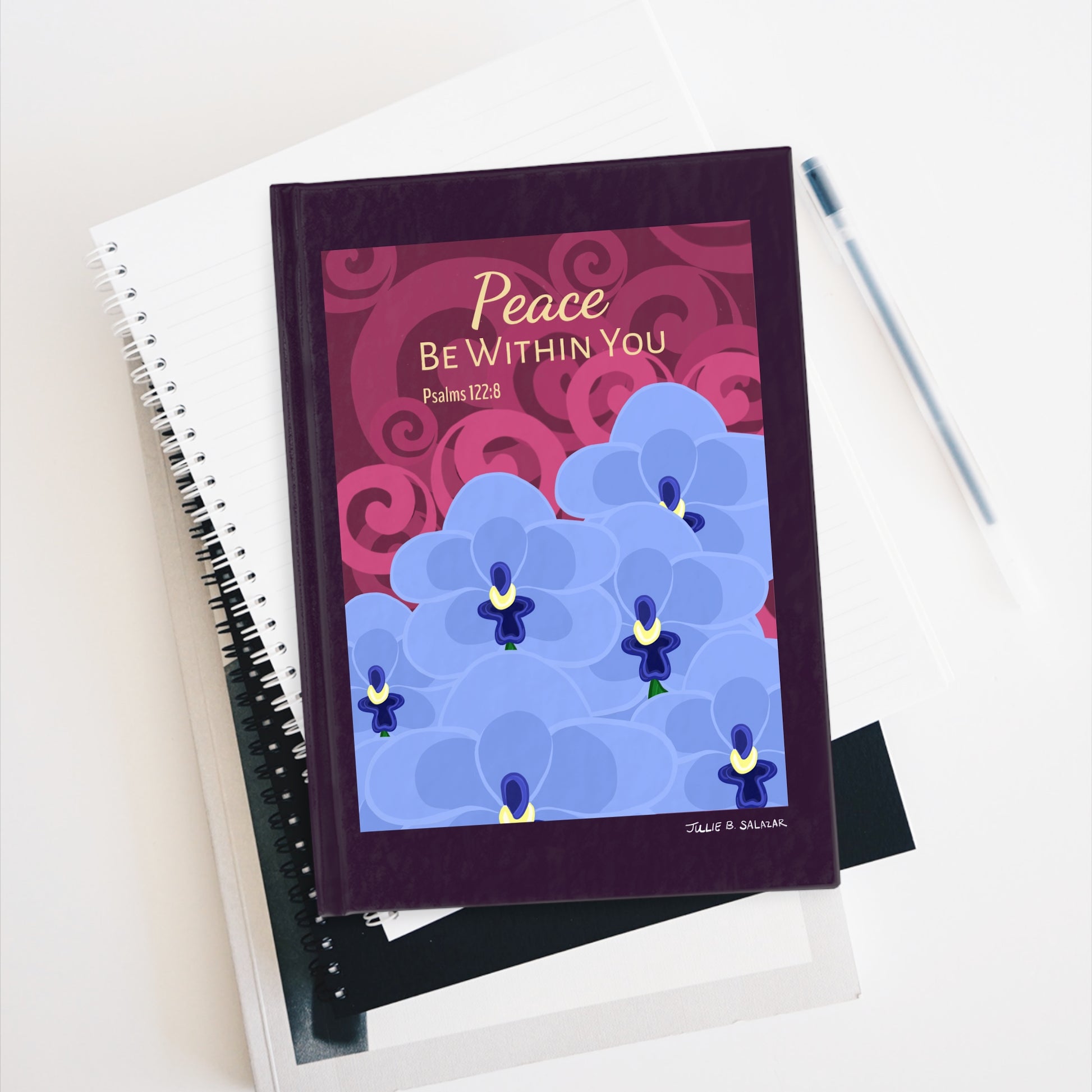 “Peace Be Within You”, IMAGINE™ Series Hand-Drawn Orchid Art Print, Hardcover Journal—Lined or Blank